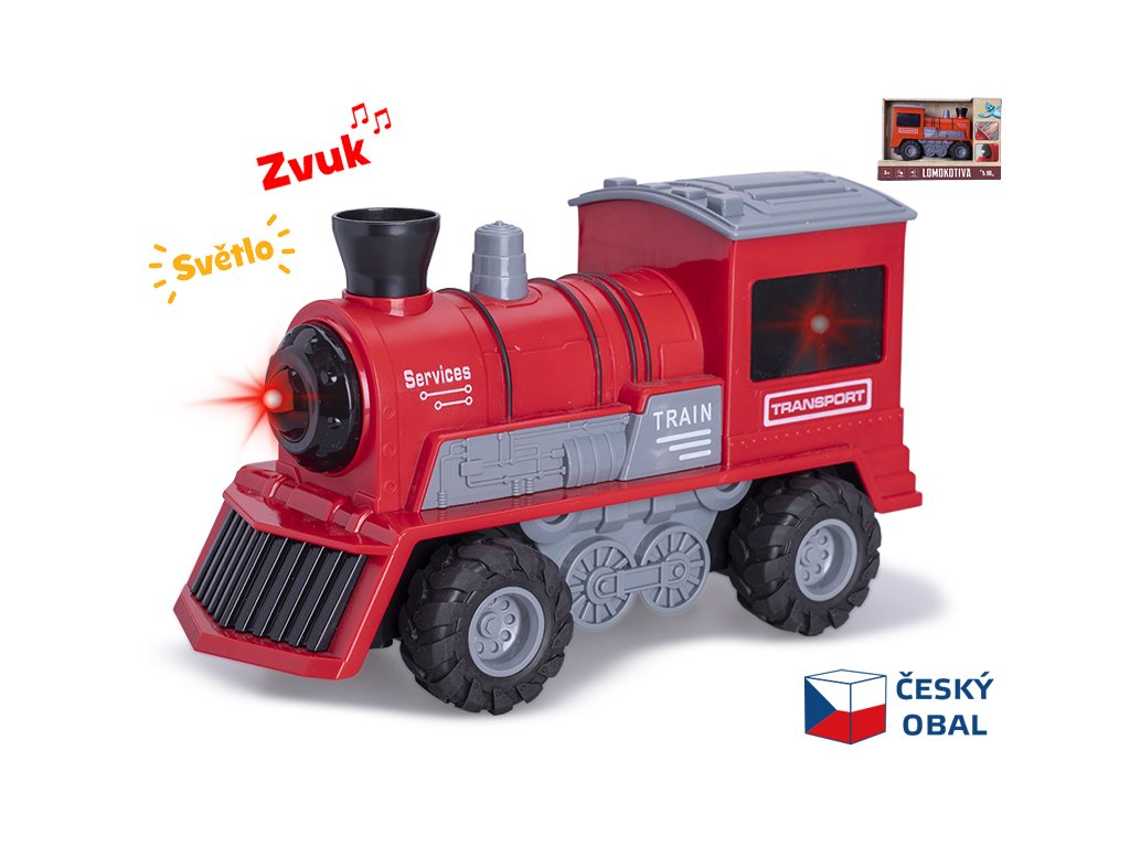Červená lokomotiva 1:16 na setrvačník se světlem a zvukem, 22,5 cm | Mikro Trading