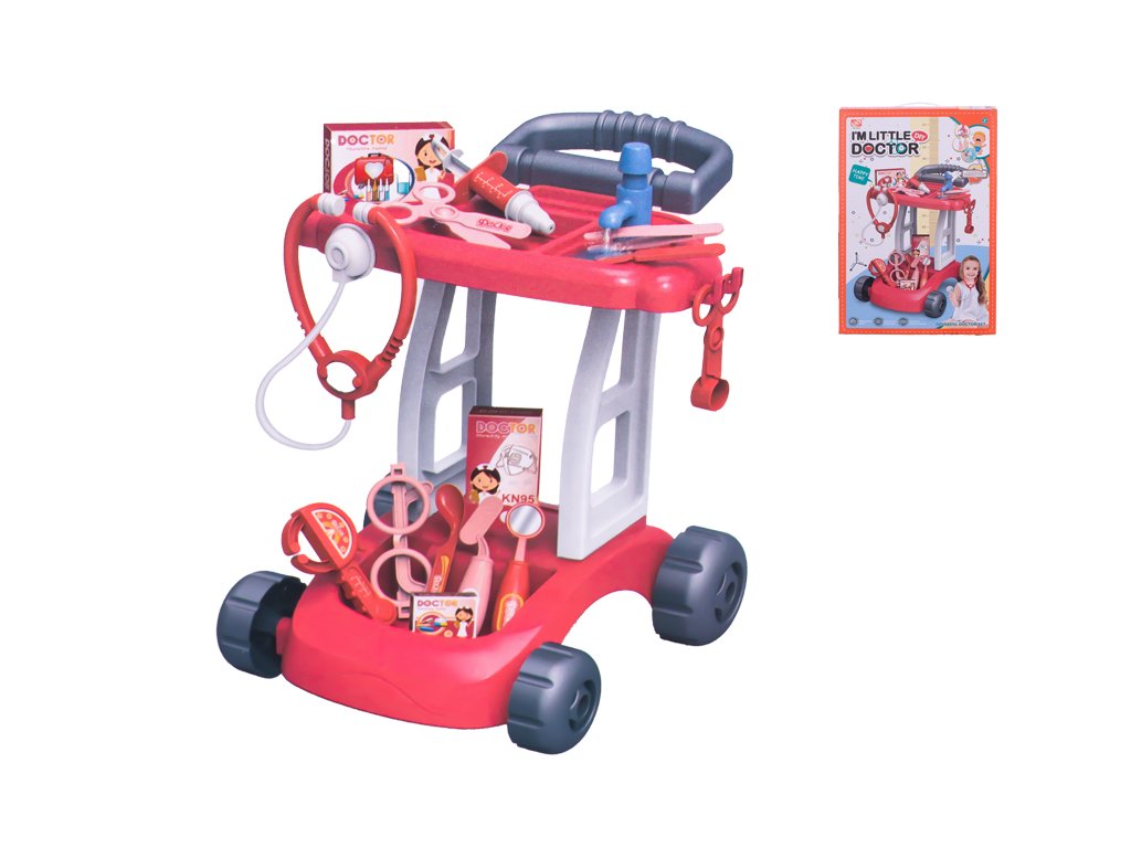 Pohotovost je na cestě! Červený lékařský vozík o rozměrech 37x31x37,5 cm obsahuje vše potřebné pro malého doktora nebo doktorku k ošetření pacientů.Doplňkové parametry