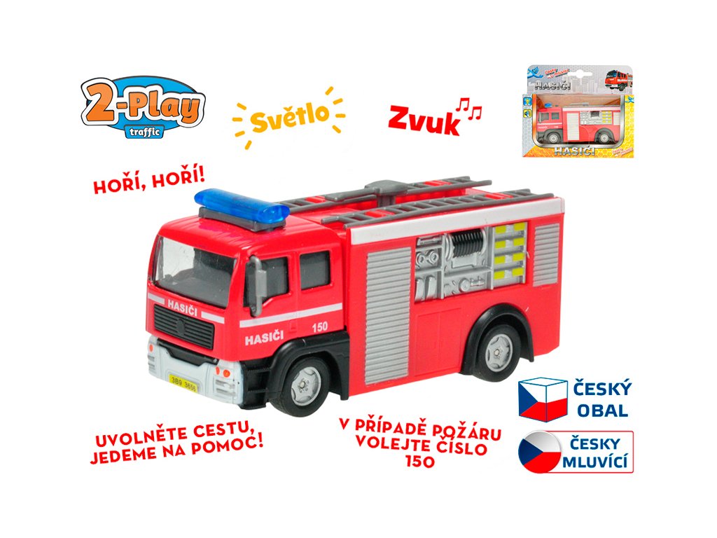 Česky mluvící kovové hasičské auto CZ se světlem, 12 cm | 2-Play