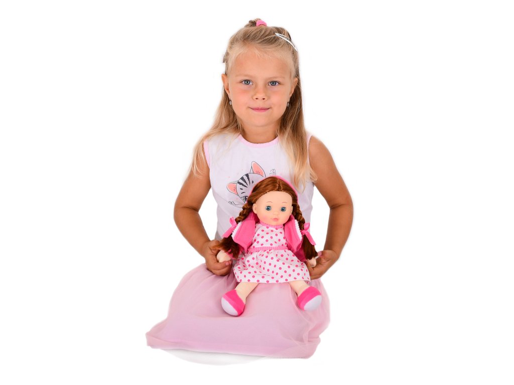 Seznamte se s veselou Sofinkou! Tato 31 cm vysoká hnědovlasá panenka s měkkým tělem a mrkacíma očima po stisknutí bříška říká české věty a zpívá. Skvělá interaktivní kamarádka. Pro zprovoznění jsou potřeba baterie (nejsou součástí balení).Doplňkové parametry