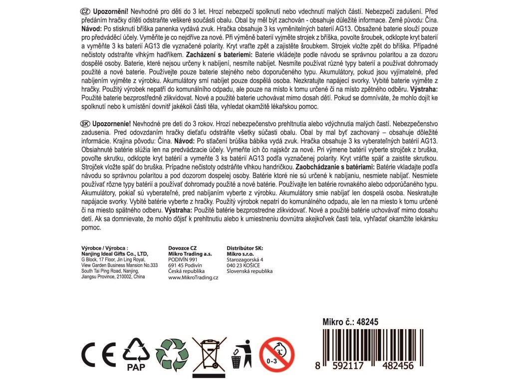| Výrobce/dovozce: | Mikro Trading a.s., Podivín 991, 691 45 Podivín, Česká republika, info@mikrohracky.cz, https://www.mikrotrading.cz |