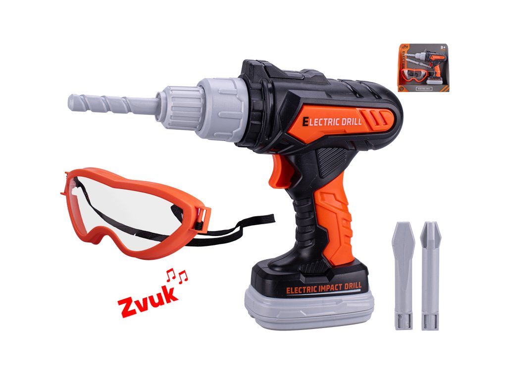 Dětská příklepová vrtačka se zvukem, brýlemi a vrtáky, 20 cm | Mikro Trading