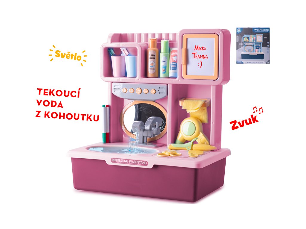 Dětské umyvadlo růžové s tekoucí vodou a doplňky | Mikro Trading