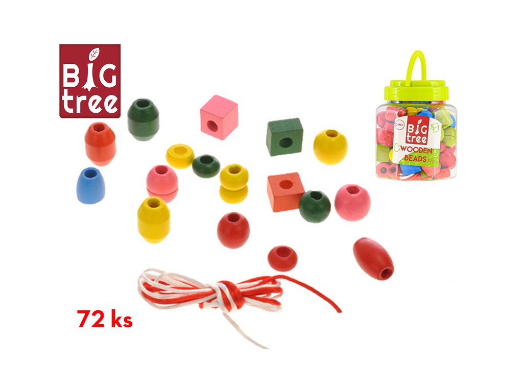 Navlékejte a tvořte! Sada 72 kusů velkých dřevěných korálků v praktické dóze je ideální pro rozvoj kreativity a jemné motoriky u dětí.Doplňkové parametry