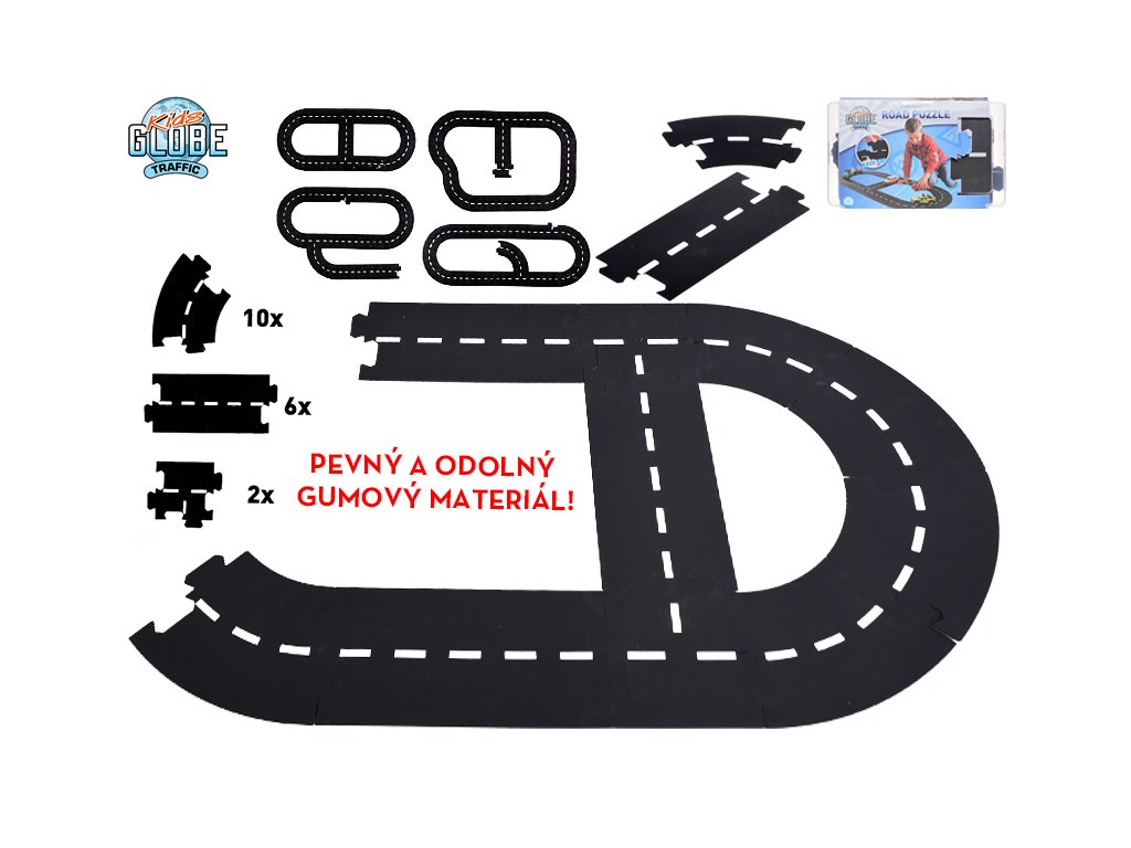 Postavte si silnici podle svých představ! Tato flexibilní gumová autodráha s celkovým obvodem 307,5 cm umožňuje vytvářet nekonečné variace tratí. Je kompatibilní s většinou autíček.Doplňkové parametry
