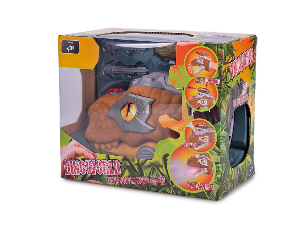 Zažijte dechberoucí setkání s dinosaurem! Tato 17 cm velká dinosauří hlava má svítící oči, vydává hrozivý řev a po nalití vody chrlí studenou páru. Pro zprovoznění jsou potřeba baterie (nejsou součástí balení).Doplňkové parametry