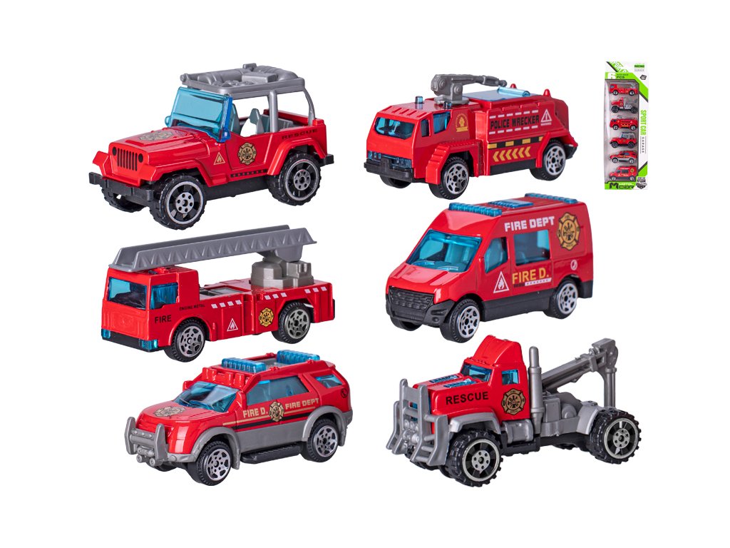 Malá, ale akceschopná jednotka! Sada 6 různých kovových hasičských aut o délce 7 cm s volným chodem.Doplňkové parametry