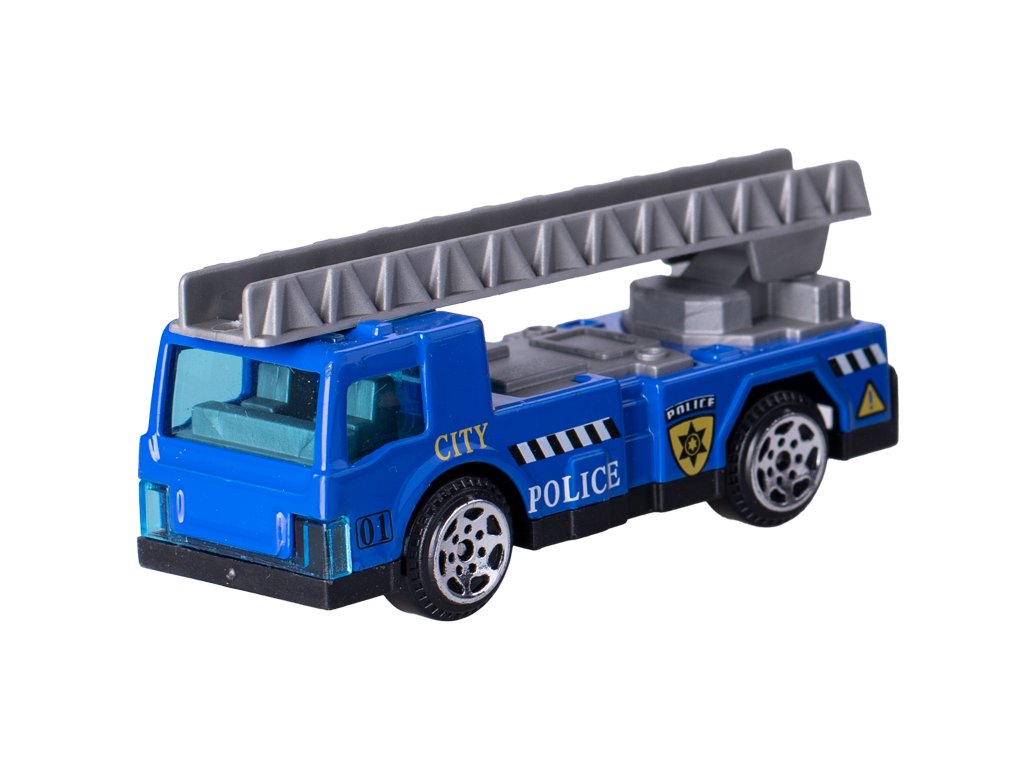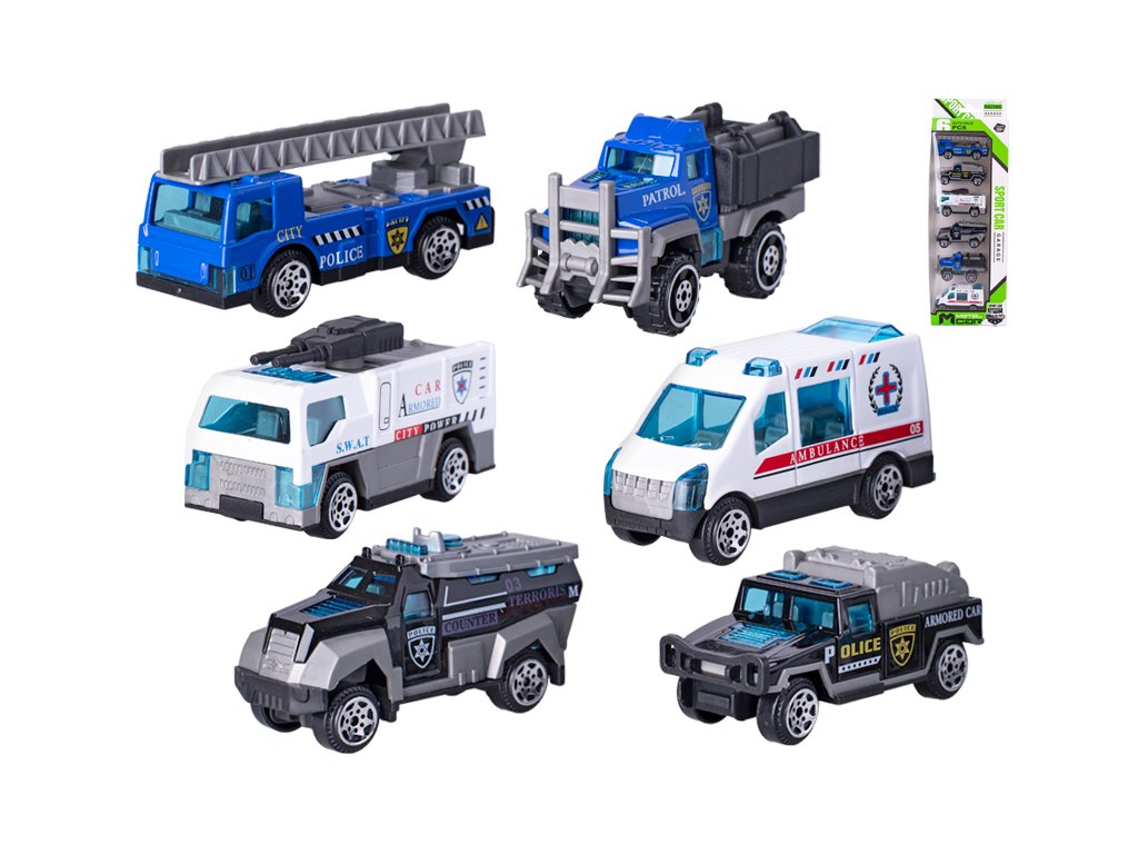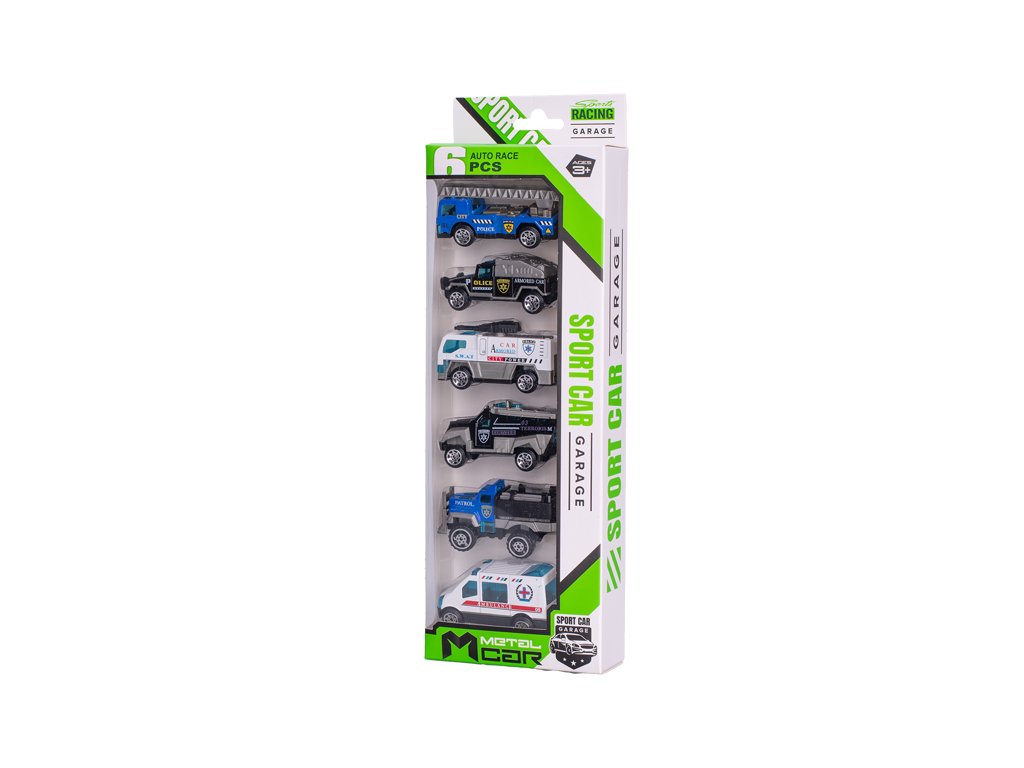 Udržujte pořádek s touto sadou! Balení obsahuje 6 různých kovových policejních aut o délce 7 cm s volným chodem.Doplňkové parametry
