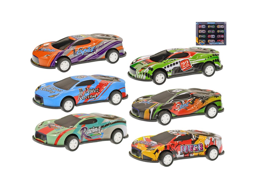 Kovové závodní auto na zpětný chod, 8,5 cm, 12 ks v balení | Mikro Trading