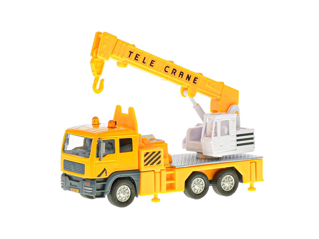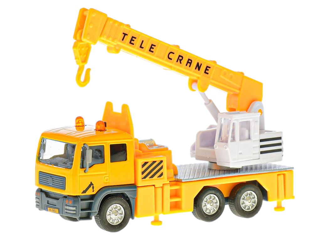 Zvedněte ten nejtěžší náklad! 15 cm kovový jeřáb jezdí na zpětný chod, má výsuvné rameno a je vybaven světly a zvuky pro realistickou hru. Pro zprovoznění jsou potřeba baterie (nejsou součástí balení).Doplňkové parametry