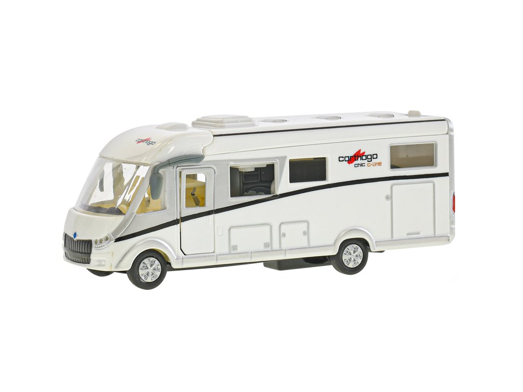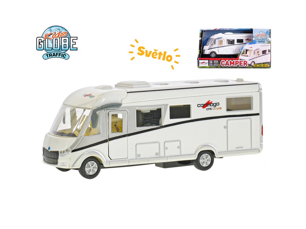 Vydejte se na dovolenou snů! Detailně propracovaný kovový model karavanu Carthago o délce 16 cm jezdí na zpětný chod a po stisknutí se mu rozsvítí vnitřní světla. Pro zprovoznění jsou potřeba baterie (nejsou součástí balení).Doplňkové parametry