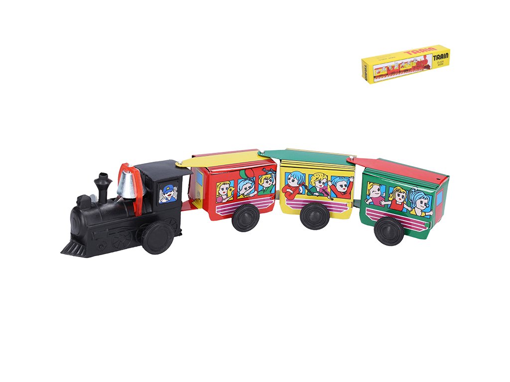 Nastupovat, vlak je připraven k odjezdu! Tento krásný, 28 cm dlouhý kovový vlak jezdí na klasické natažení klíčkem. Retro hračka, která potěší malé i velké milovníky železnice.Doplňkové parametry