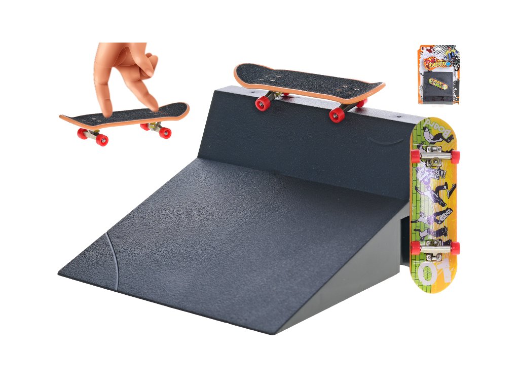 Kovový skateboard s rampou, 9,5 cm | Mikro Trading