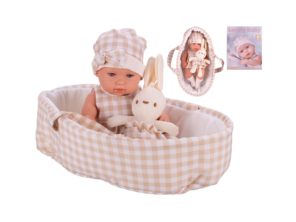 Miminko s tvrdým tělem, nosítkem a zajíčkem, 33 cm | Mikro Trading