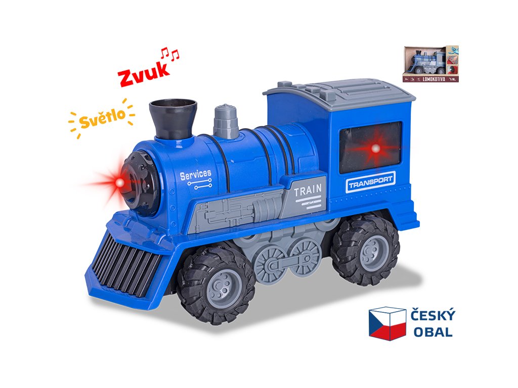 Modrá lokomotiva 1:16 na setrvačník se světlem a zvukem, 22,5 cm | Mikro Trading
