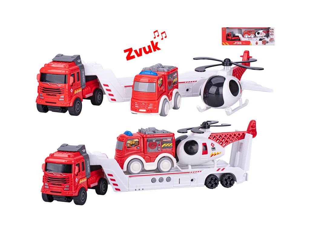 Nákladní auto se zvukem a 2 hasičskými vozidly, 30 cm | Mikro Trading