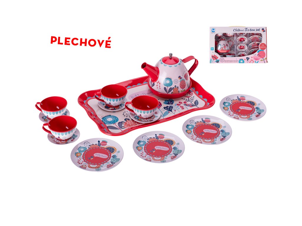 Plechový čajový set s podnosem, 15 ks | Mikro Trading