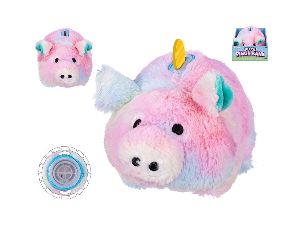Spoření může být hebké a zábavné! Tato originální 20 cm velká plyšová pokladnička ve tvaru prasátka je ideálním způsobem, jak naučit děti šetřit. Vhodná pro děti od 18 měsíců.Doplňkové parametry