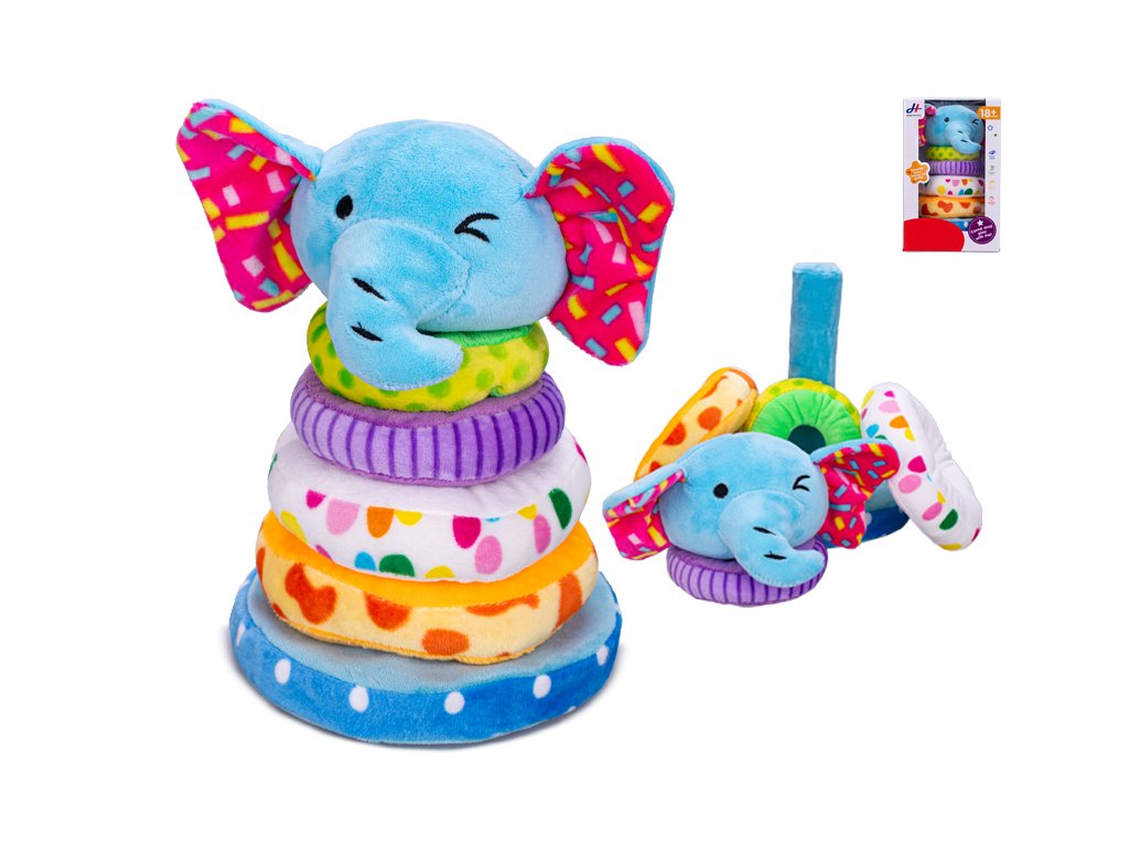 Rozvíjejte motoriku a smysly vašeho děťátka hravou formou! Tato 21 cm vysoká plyšová pyramida ve tvaru slona obsahuje 4 navlékací kroužky a pískátko. Hračka je určena pro děti od 18 měsíců.Doplňkové parametry