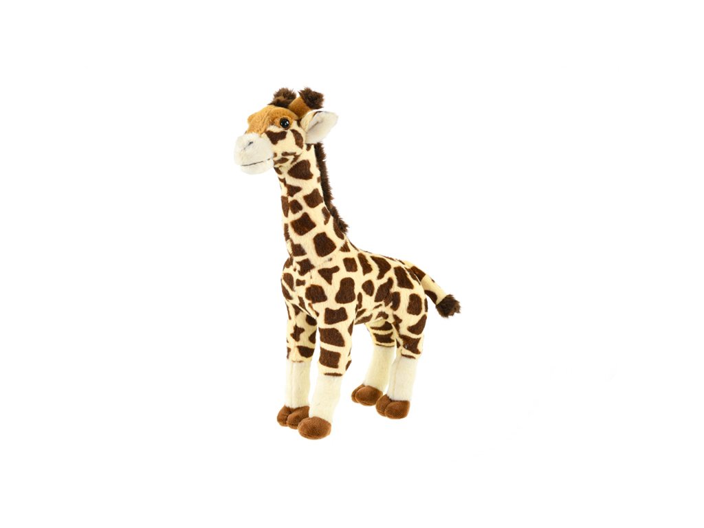Elegantní obyvatelka africké savany! Tato 28 cm vysoká stojící žirafa je skvělým doplňkem do sbírky zvířátek. Je vyrobena z kvalitního plyše a je bezpečná pro děti od narození (0m+).Doplňkové parametry