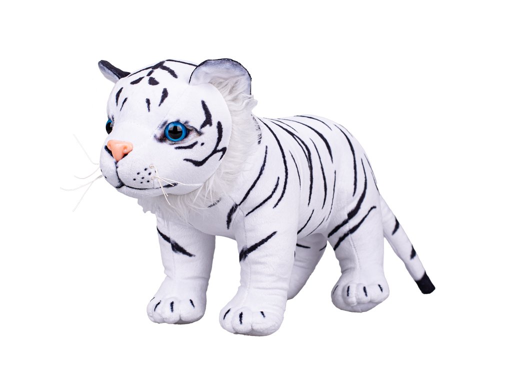 Obdivujte vzácnou a elegantní šelmu! Tento 35 cm dlouhý bílý indický tygr je nejen krásný, ale i neuvěřitelně hebký. Stane se ozdobou každého pokojíčku a věrným kamarádem. Bezpečný pro děti již od narození (0m+).Doplňkové parametry