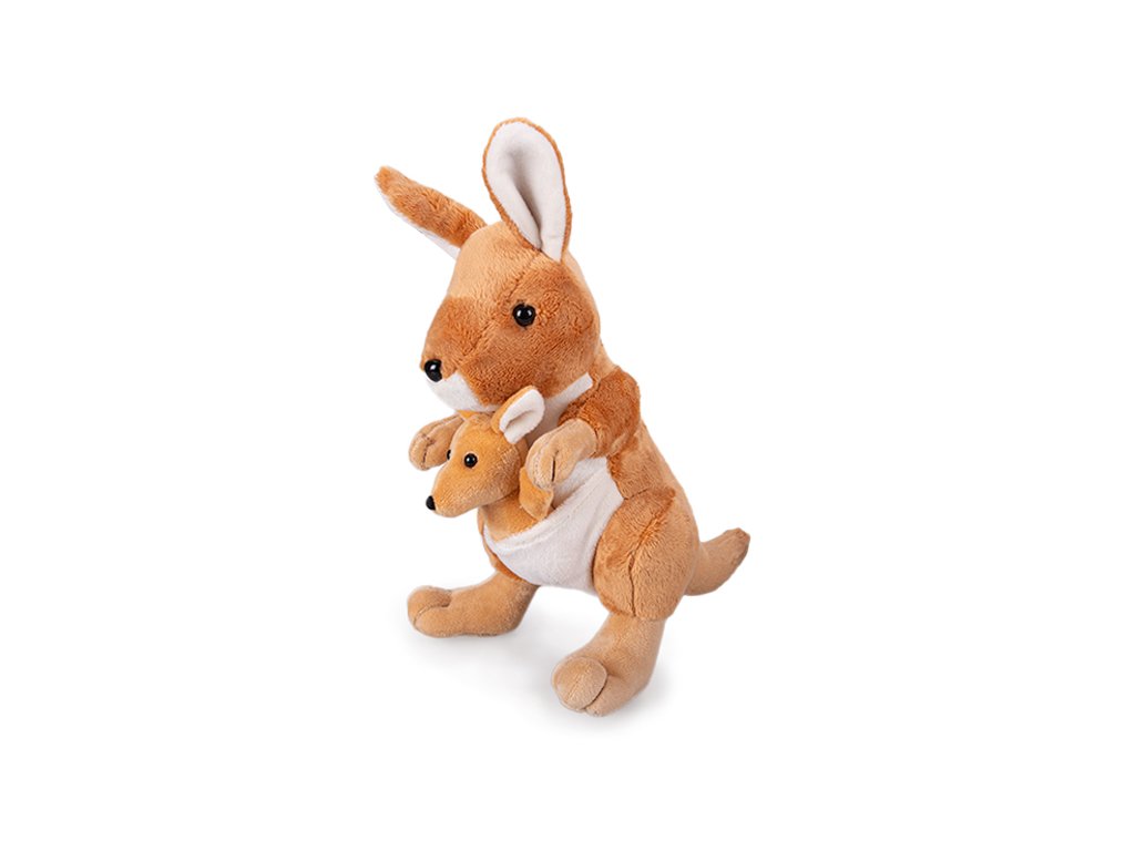 Dvojitá porce roztomilosti! Tato 29 cm vysoká plyšová klokanice má ve svém vaku schované malé mláďátko, které lze vyndat. Nádherná hračka, která učí o mateřské lásce. Bezpečná pro děti od narození (0m+).Doplňkové parametry