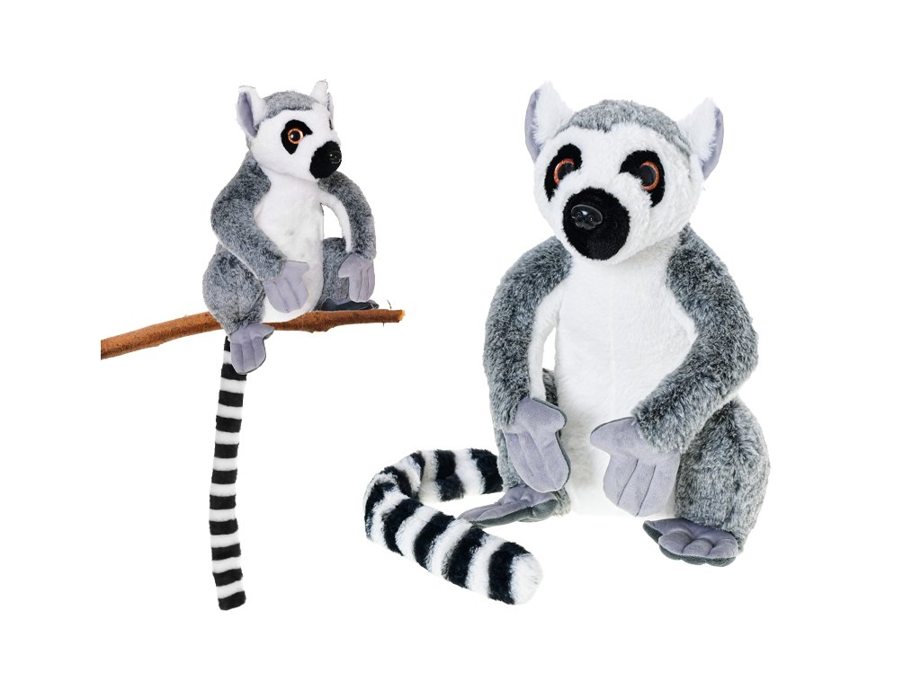 Seznamte se s obyvatelem Madagaskaru! Tento 35 cm vysoký sedící lemur s dlouhým pruhovaným ocasem a velkýma očima je nejen krásný, ale i neuvěřitelně hebký. Bezpečný pro děti od narození (0m+).Doplňkové parametry