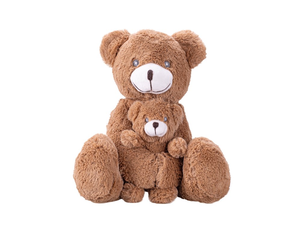 Něžné objetí medvědí maminky a jejího mláděte! Tento 30 cm velký sedící medvěd se svým medvídkem je ztělesněním roztomilosti. Perfektní dárek pro každou příležitost. Bezpečný pro děti od narození (0m+).Doplňkové parametry