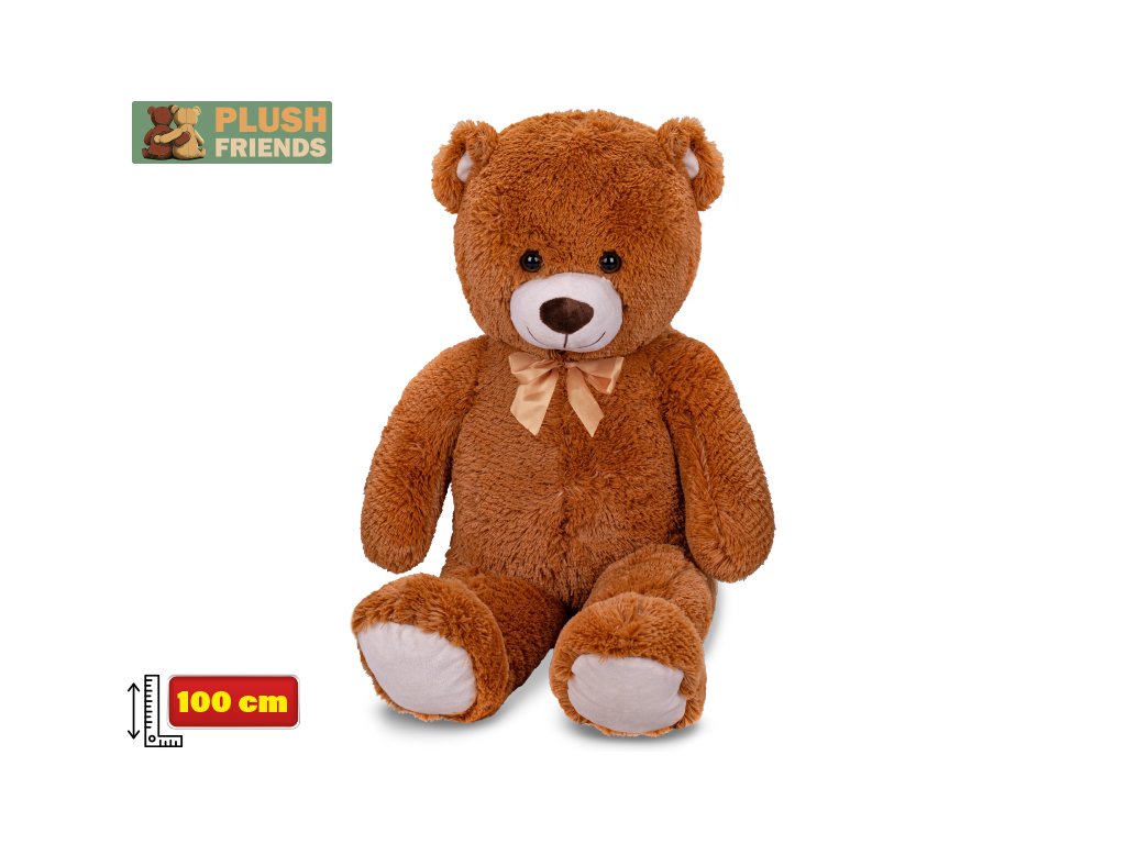 Plyšový medvěd tmavě hnědý s mašlí, 100 cm | Plush Friends