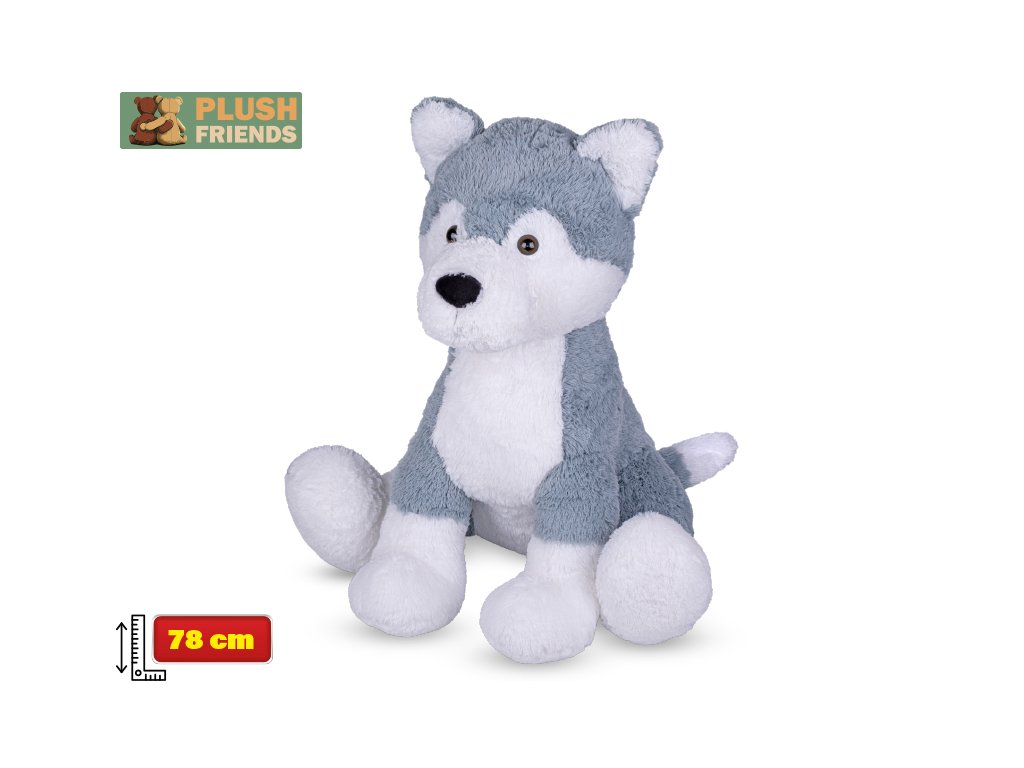 Věrný severský přítel v životní velikosti! Tento obří, 78 cm vysoký sedící pes husky s pronikavýma modrýma očima se stane dominantou každého pokoje a nerozlučným kamarádem. Bezpečný pro děti od narození (0m+).Doplňkové parametry