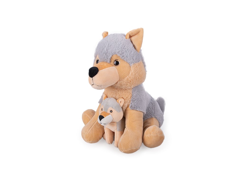 Severská smečka pro vaše nejmenší! Krásná, 25 cm vysoká sedící fena husky se tulí ke svému malému štěňátku. Skvělý dárek pro všechny milovníky psů. Bezpečný pro děti od narození (0m+).Doplňkové parametry