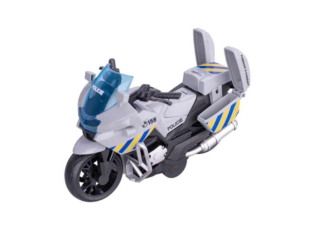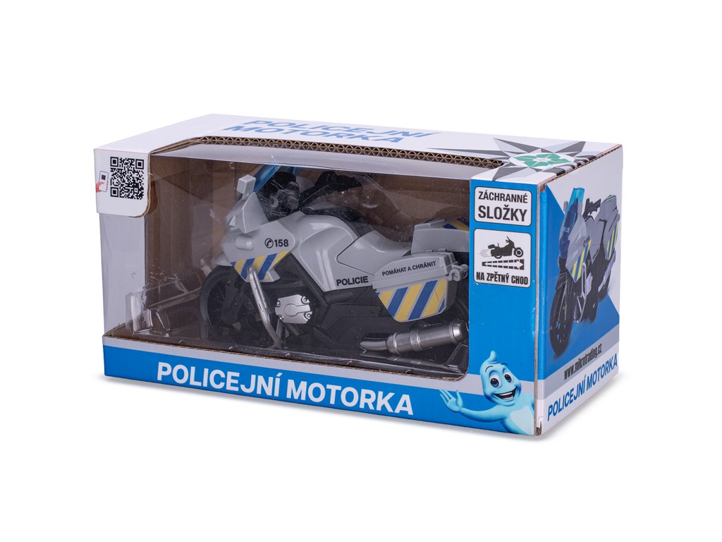 Udržujte pořádek na silnicích! Tento 16 cm dlouhý model policejní motorky v českém designu je vybaven pohonem na zpětný chod.Doplňkové parametry
