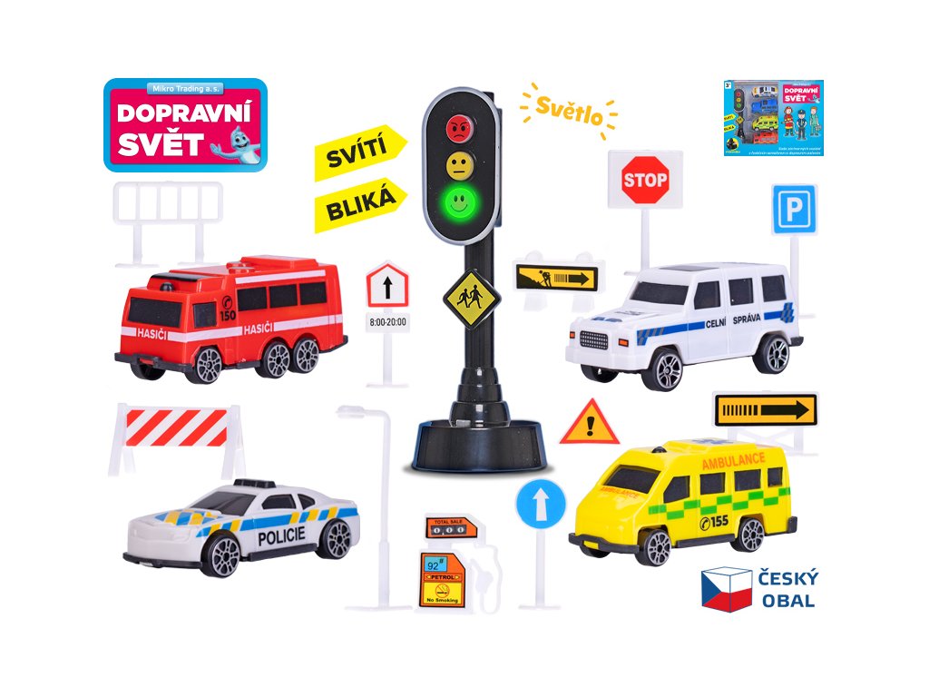 Vytvořte si vlastní dopravní hřiště! Sada obsahuje 4 autíčka (7 cm), dopravní značky a funkční semafor, který svítí. Doporučený věk dle výrobce. Pro zprovoznění jsou potřeba baterie (nejsou součástí balení).Doplňkové parametry