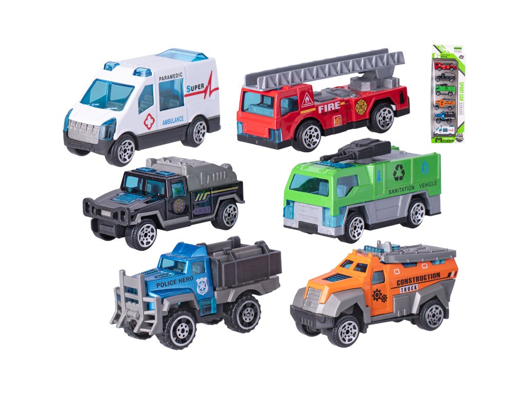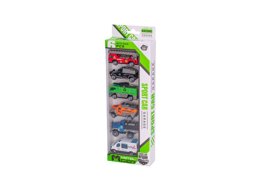 Pro každého něco! Sada obsahuje mix 6 kovových autíček (sportovní, běžná, servisní) o velikosti 6-7,5 cm.Doplňkové parametry