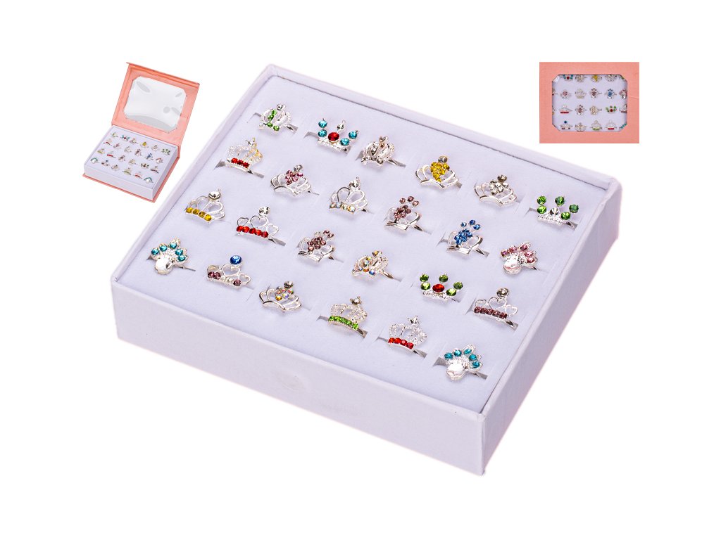 Pro všechny malé princezny! Dárková krabička ve tvaru srdce obsahuje 24 kovových prstýnků, z nichž každý je ozdoben motivem korunky.Doplňkové parametry