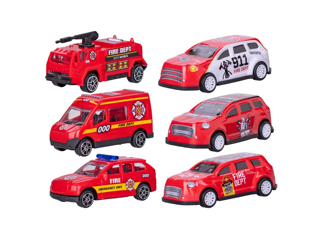 Celá hasičská zbrojnice v jednom balení! Sada obsahuje 6 plastových a 6 kovových hasičských vozidel s různými typy pohonu.Doplňkové parametry