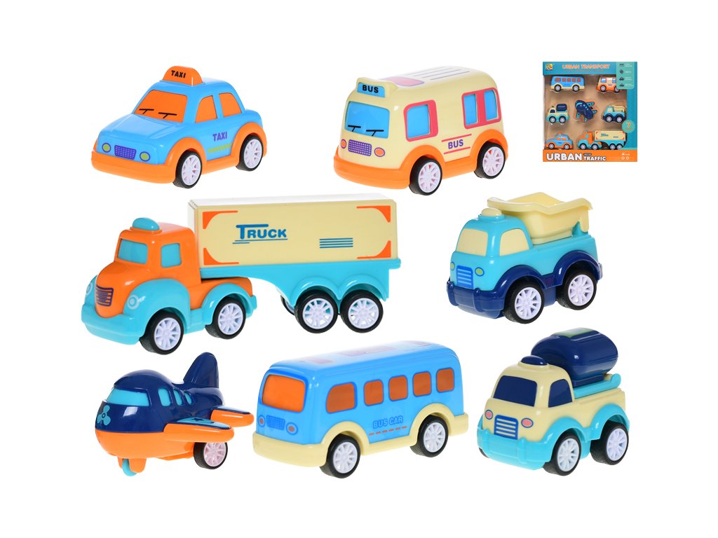 Velká sbírka pro milovníky rychlých kol! Sada obsahuje 7 různých vozidel (osobní, nákladní, stavební) o velikosti 6,5-14 cm. Každé autíčko je vybaveno pohonem na zpětný chod nebo setrvačník.Doplňkové parametry