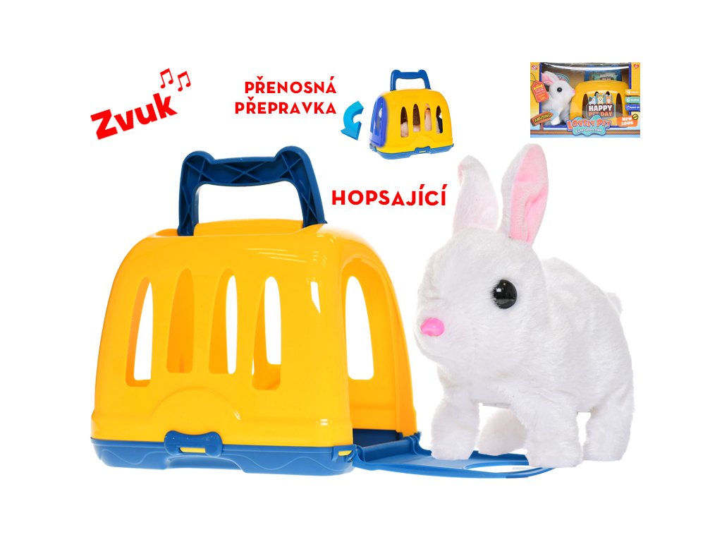 Skákající králíček se zvukem a přepravkou, 17 cm | Mikro Trading