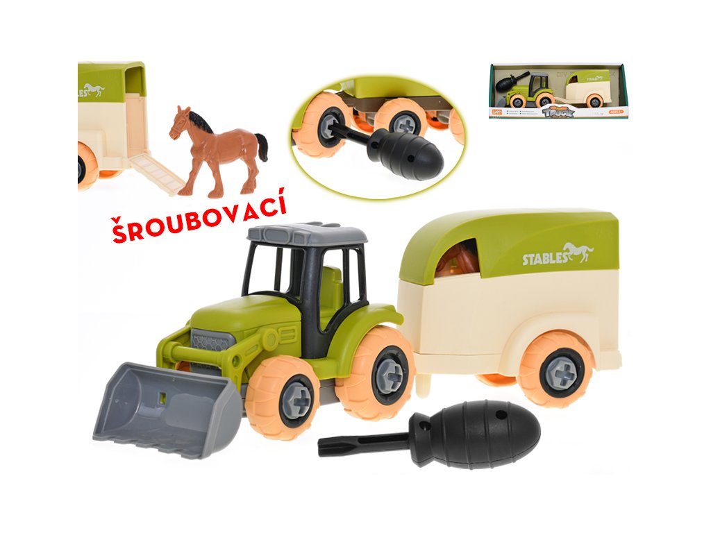 Šroubovací traktor s přívěsem a koněm, 26 cm | Mikro Trading
